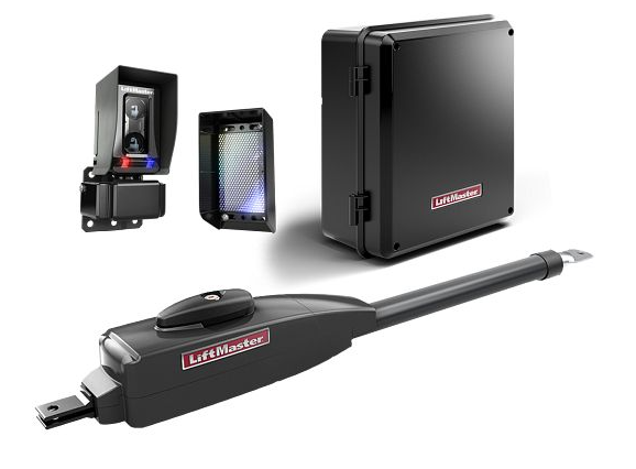 Post Mounted Swing Gate OperatorsLiftmasteer LA500Being a 24 volt system they can continue to operate when the power is out, and accept a wide variety of accessories from other manufacturers. The included Liftmaster photo-eye has the advantage of having a built-in heater. Photo-eyes are now required, and can be very problematic in our Pacific North West enviroment as the often fog up, preventing the gate from closing. While remote controls are extra, the operator does include a built-in reciever which also works with the wireless keypad they offer. |